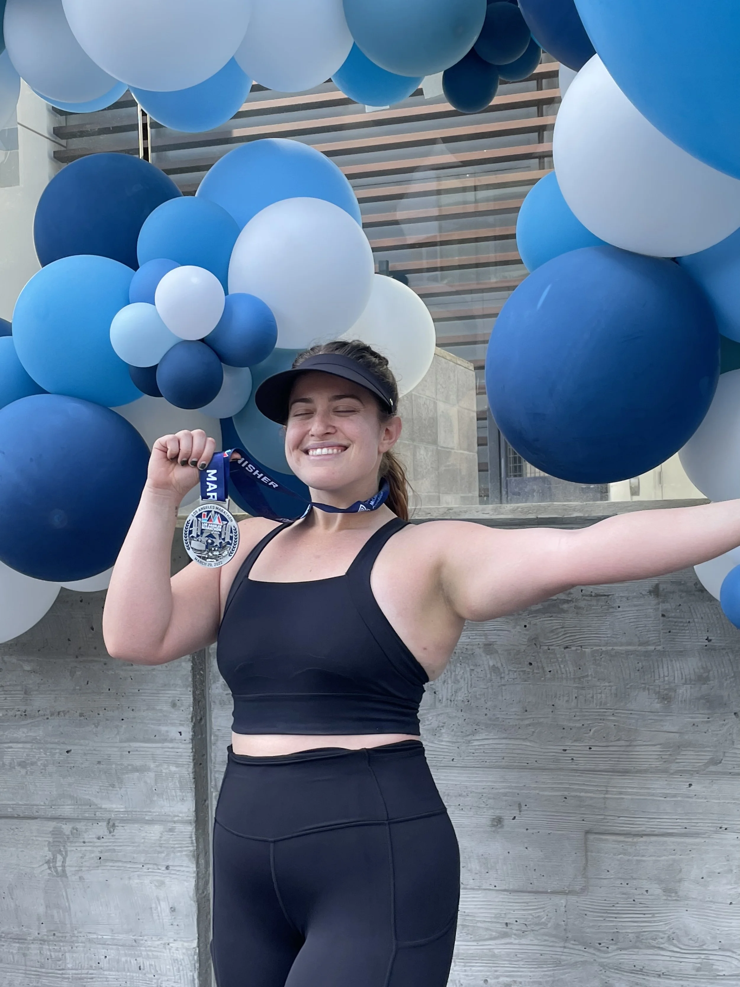 that slowed me down, and that slowed pace is what i carried mostly throughout the race. towards the end i got slower as my pain levels increased. it’s hard, especially now in reflection mode to not think about things in a “what i could have done differently” lens. this was my first marathon. all i wanted was to finish, and i did. i accomplished so many things i didn’t think i would, and for that i’ll be forever proud of myself. i ran upwards of 85% of that race, which is more than most of my training runs. i felt the strongest and happiest i had during a run in a long time, even through the pain. i also felt the most supported, which i believe is what carried me through.